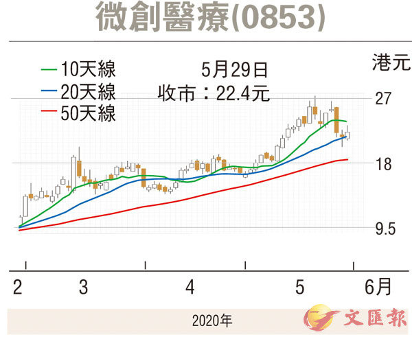 管理層認為,雖然受到新冠肺炎疫情影響,但估計今年收入仍有增長,其中心血管業務升5%至10%,骨科業務倒退4%至6%,心律管理業務亦會有單位數跌幅。除現有業務外,集團已進一步踏足醫療機械人業務,已先後公布戰略性投資至新加坡醫療器械公司NDR,及法國醫械公司Robocath,有望成為新增長點。另一方面,微創於今年1月已宣布計劃分拆從事心臟瓣膜業務的附屬公司微創心通上市,後者於4月中透過配售新股份引入新投資者,集資1.3億元,花旗環球及摩根大通為配售代理。市場認為是次配售可能為微創心通獨立上市鋪路。