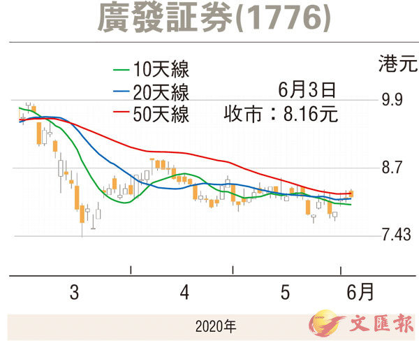 最新的營運數據顯示,集團4月份營業收入13.75億元,按年增加24%。錄得淨利潤6.08億元,增長35.9%。今年首四個月,累計營業收入45.95億元,淨利潤21.66億元。大行對於廣發証券明年及2022年的盈利預測也表樂觀,分別上調1.3%及4%,並將評級由「中性」升至「跑贏大市」,目標價由9.5元(港元,下同)升至9.8元,即較現價尚有約2成的上升空間。