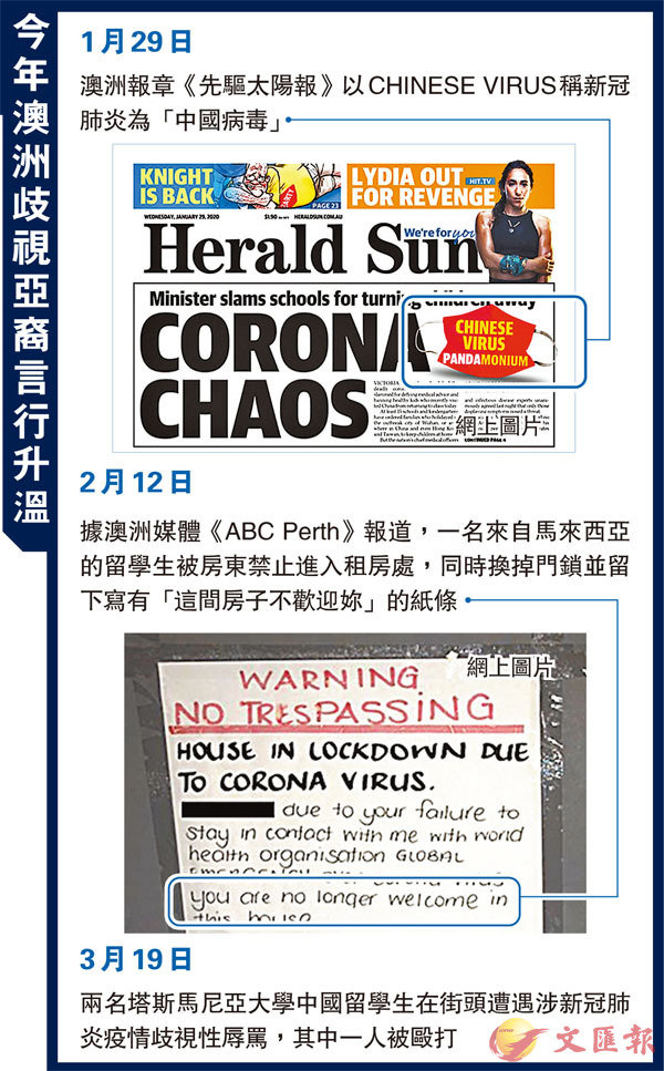 澳洲報章《先驅太陽報》以CHINESE VIRUS稱新冠肺炎為「中國病毒」