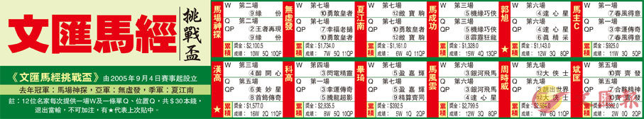 《文匯馬經挑戰盃》由2005年9月4日賽事起設立