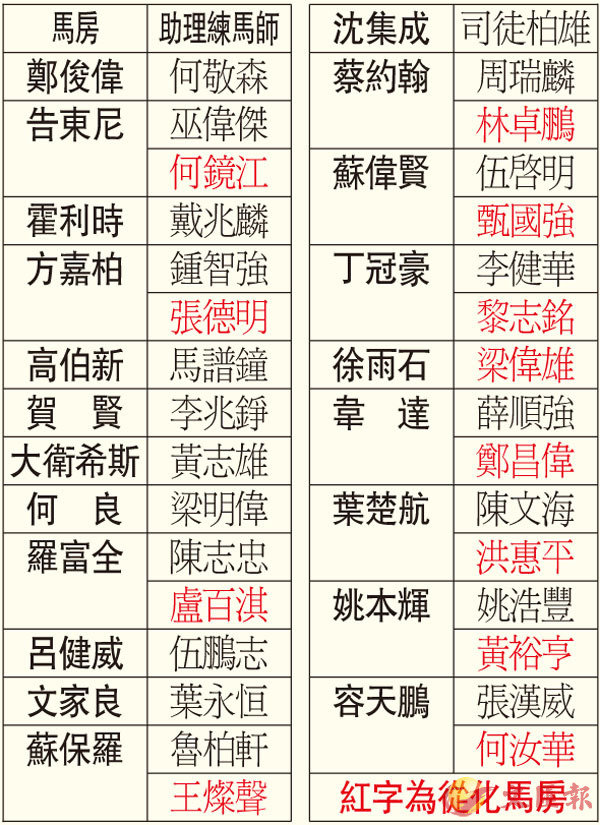2.8批准擢升下列馬房領班為2020/2021年度馬季助理練馬師: