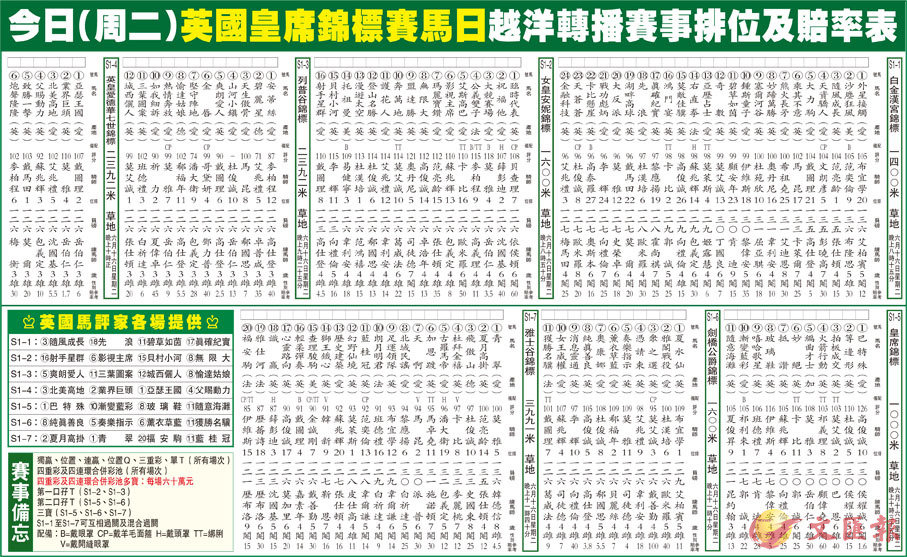 今日(周二)英國皇席錦標賽馬日越洋轉播賽事排位及賠率表