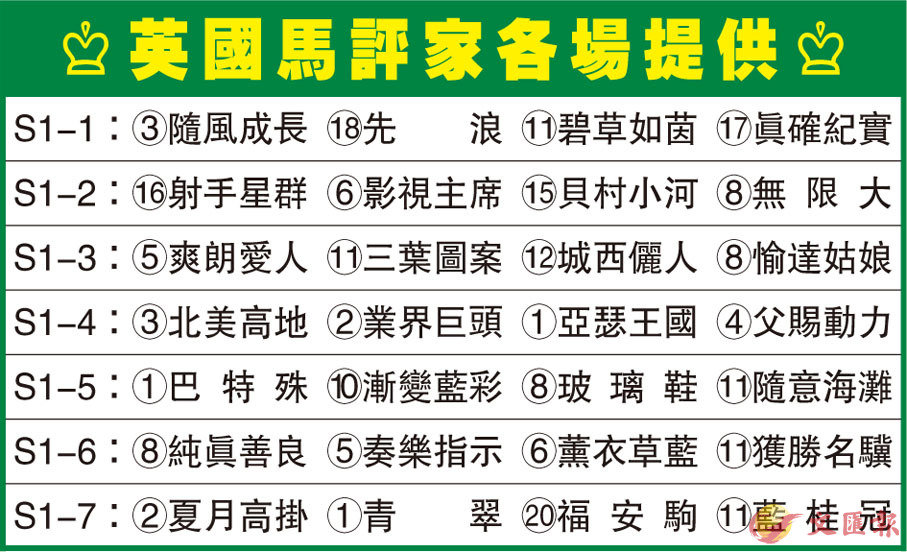 S1-6:い純真善良 ぁ奏樂指示 あ薰衣草藍 11獲勝名驥
