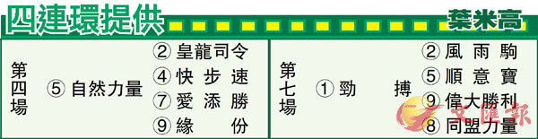 第四場、第四班、一八○○米(草地)。姚本輝馬房的「自然力量」,周歲由練者在紐西蘭卡拉卡拍賣會以四十二萬紐元購入,Pins子嗣性能主要睇母線,所以在港一批有長有短,但從部署上看,似乎姚本輝亦很早認定牠是性能偏長,在港兩戰千四熱身,加程千八米開始入局,前仗起動甚慢,力騎下遲遲才撻荂A僅差一步飲恨得亞軍;上次加程二千遇不利步速得第五,今次試好大閘並重返入Q的千八米,只要入直路及早騎起發力,以其後勁應該夠殺。