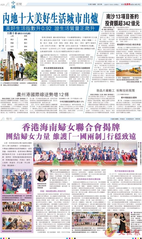 與此同時,香港海南社團總會7月1日當天於全港各地舉辦25個街站,以設立「心意牆」、「留言板」等各種形式讓香港市民表達對香港的祝福、對支持國安立法的心聲。香港海南婦女聯合會積極參與,獻出一份力量,會長李競表示,每位會員都衷心支持香港國安法通過實施。