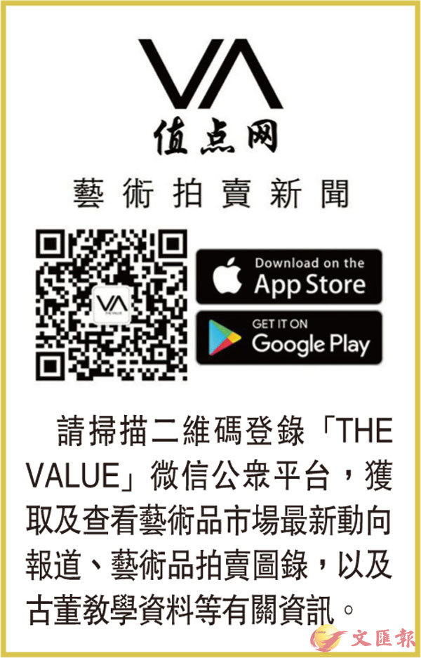 請掃描二維碼登錄「THE VALUE」微信公眾平台,獲取及查看藝術品市場最新動向報道、藝術品拍賣圖錄,以及古董教學資料等有關資訊。