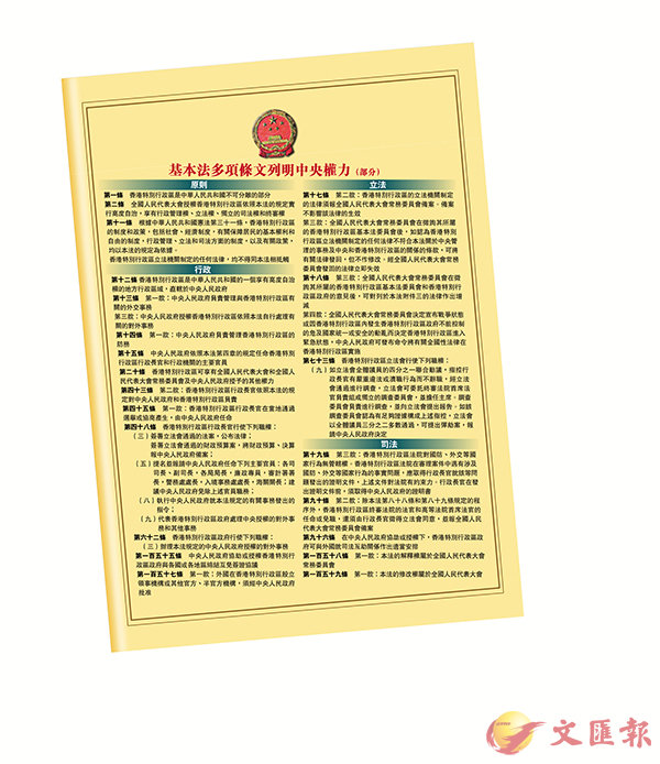基本法多項條文列明中央權力(部分)
