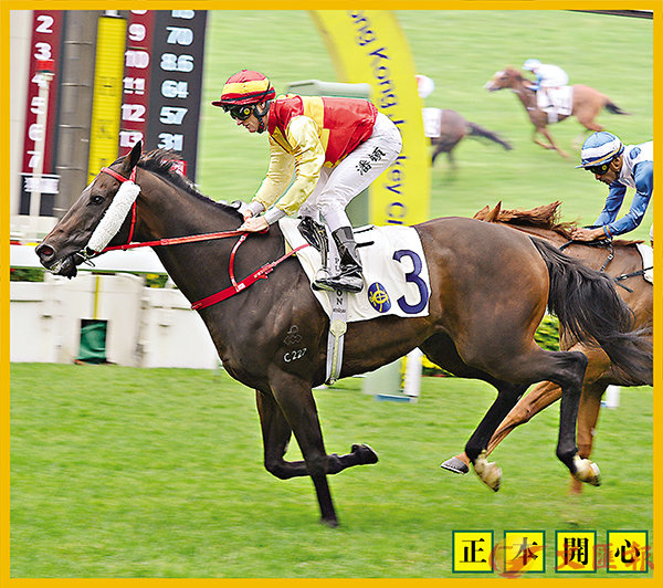去季在田草千四米有好演出,十戰共錄得兩冠兩亞兩季成績的「正本開心」(圖3號),今仗在同程作新馬季首次出賽,羅富全期望馬兒會有好表現,他說:「馬兒上季在快活谷煞科戰仍有上陣,暑假只休息兩個多星期便復課,不過牠是一匹相當耐拚之賽駒,體力恢復得相當快,較早前在泥地試閘,由巴度策騎走勢不俗,試閘後在晨課上再出操,狀態進一步提升,今次交由巴度主轡,相信可以發揮出應有水準,如臨場有快步速之助,對牠後上跑法會更有利,希望到時會有令人驚喜的表現。」