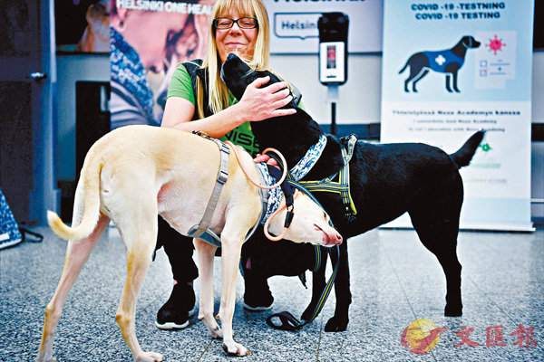 芬蘭4隻經訓練的嗅探犬日前在首都赫爾辛基國際機場,展開為期4個月的新冠病毒嗅探實驗。據赫爾辛基大學研究團隊介紹,嗅探犬10秒內便能測出病毒,初步檢測準確率接近100%,即使確診者沒有病徵也可被嗅探出來。這項實驗由芬蘭政府贊助,旅客被要求以紙巾在頸部抹一下,把紙巾放進罐子,與盛載其他氣味的罐子放在一起,如果狗隻嗅到病毒氣味便會吠叫,該名旅客會被要求接受免費核酸檢測,以證實嗅探犬的判斷是否正確。 ■綜合報道