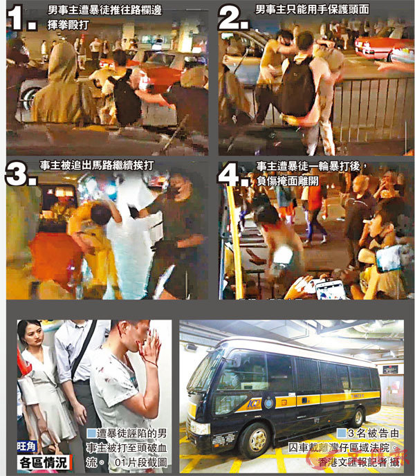 去年10月5日,大批反蒙面法黑衣魔在旺角通宵打砸燒,濫用私刑毆打市民。一名內地男遊客和一名清路障本地男子,分別被暴徒「老屈」拍攝「大頭相」及「便衣警」,慘遭圍毆。參與襲擊的兩男一女早前在區域法院承認傷人等罪名後,其中57歲清潔工被判監4年,另兩人判監15個月。法官郭啟安指被告出於憎恨內地人和仇警而犯案,罪行醜陋如惡棍,而利用私刑履行公義必然不會被接納,否則行為將與黑社會、惡霸無異,法庭有責任維護法律同公義,絕不容許私刑。 ■香港文匯報記者 葛婷