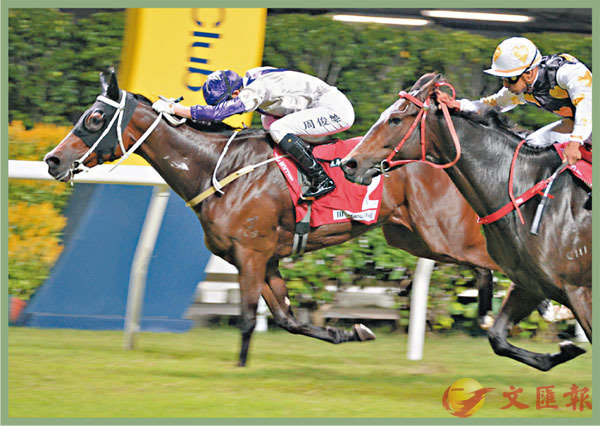 「二郎」是大摩養過的其中一匹中距離馬,無論跑泥地或草地同樣出色,也是三條賽道都贏過頭馬的佳駟,最近一仗才於谷草一哩掄元,不過,這次訓練牠的練馬師是告東尼,鞍上人用了周俊樂,這一仗「二郎」雖然是初跑谷戰,而周俊樂也是第一次騎「二郎」上陣,但鞍上人的發揮,是受到告東尼豎起大拇指讚賞。告東尼是很少稱讚見習生,周俊樂卻是例外,因為當晚此子除替東廄贏了「二郎」外,同晚也替這廄的「牛精大哥」爆冷勝出,故獲廄主的欣賞。