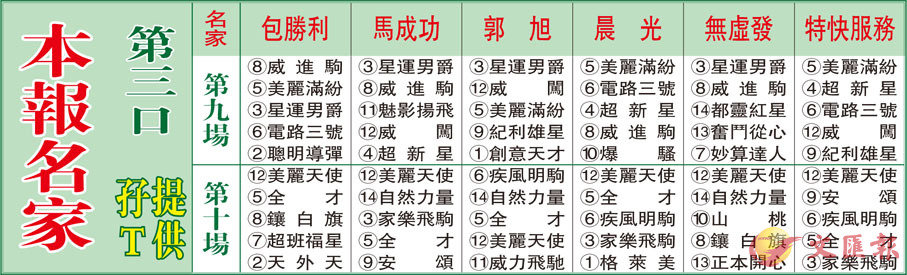 本報名家第三口孖T提供