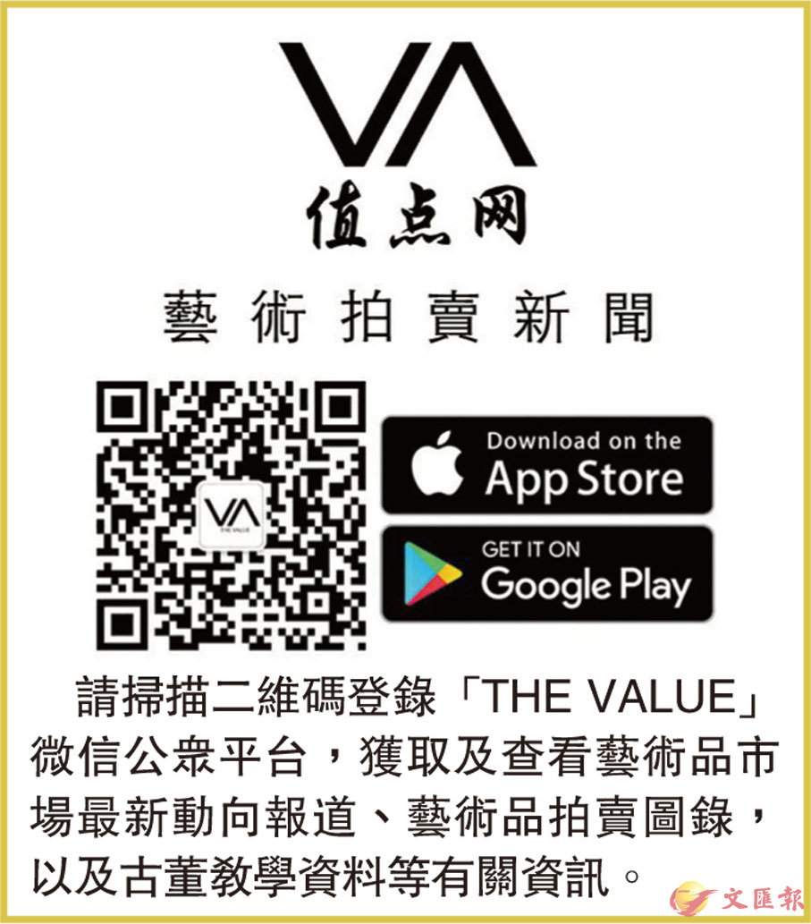 請掃描二維碼登錄「THE VALUE」微信公眾平台,獲取及查看藝術品市場最新動向報道、藝術品拍賣圖錄,以及古董教學資料等有關資訊。