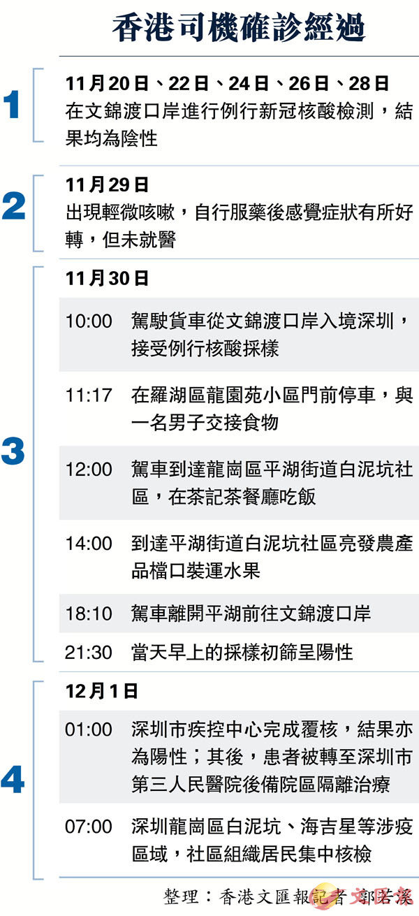01:00 深圳市疾控中心完成覆核,結果亦為陽性;其後,患者被轉至深圳市第三人民醫院後備院區隔離治療