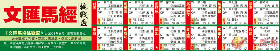 《文匯馬經挑戰盃》由2005年9月4日賽事起設立