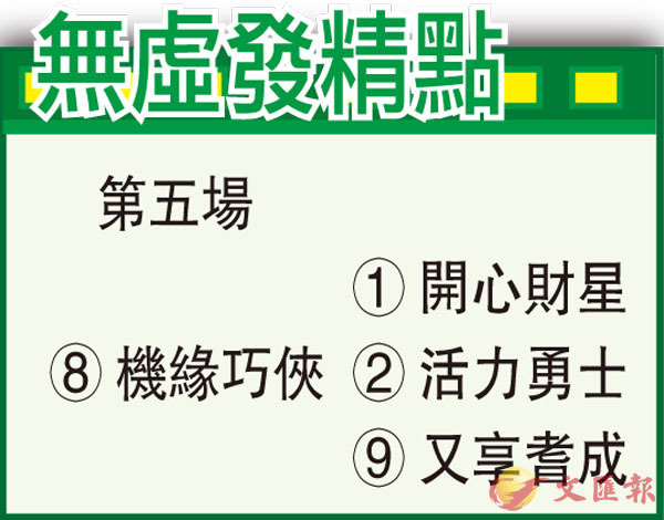 今日跑馬地馬場將會上演八場草地賽事,使用C跑道向後移欄競逐,內欄向跑道中央移入八米,闊廿二點五米,直路長三百三十四米,比A跑道長廿二米,今次是季內第四次使用C跑道,上次使用是十一月十八日,當日草地度地儀指數為2.70,場地掛牌為好地,當日九匹頭馬全部排中內檔起步,當日的C跑道大利中內檔馬。跑法方面,九匹頭馬之中後追馬佔了五匹,其餘四匹是跟前或放頭馬,當日的跑道有利後追馬。今季在谷草C跑道贏馬最多的練馬師是方嘉柏,贏了六場,之後是羅富全贏四場。騎師方面,今季谷草C跑道贏馬最多的是莫雷拉,贏了八場,之後是田泰安贏四場。今次推介「機緣巧俠」,今季由何良加盟文家良馬房之後,表現可用脫胎換骨形容,馬匹歷來三戰谷草C跑道獲得冠亞季軍各一,上名率高達百分百,今次繼續瞄準強項谷草一哩攻堅,有力爭取第三場勝仗,作膽可靠。