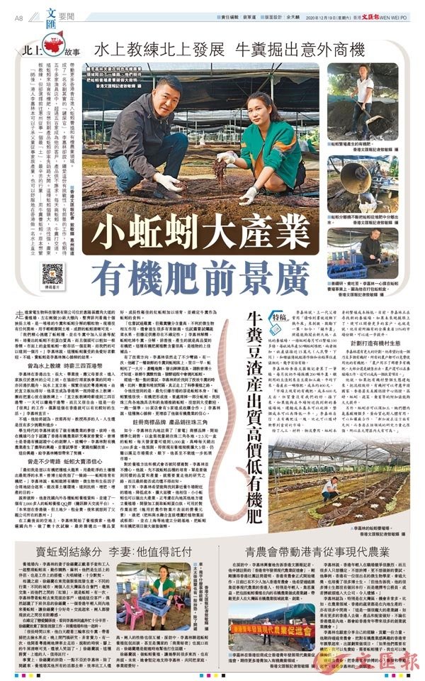 說幹就幹,他查找國內外各種蚯蚓養殖資料,並建了一個有2,000多人的蚯蚓養殖QQ群(騰訊聊天交流平台)。「本來想在香港做,但土地少,租金貴,後來就想到了父親公司所在的惠州。」
