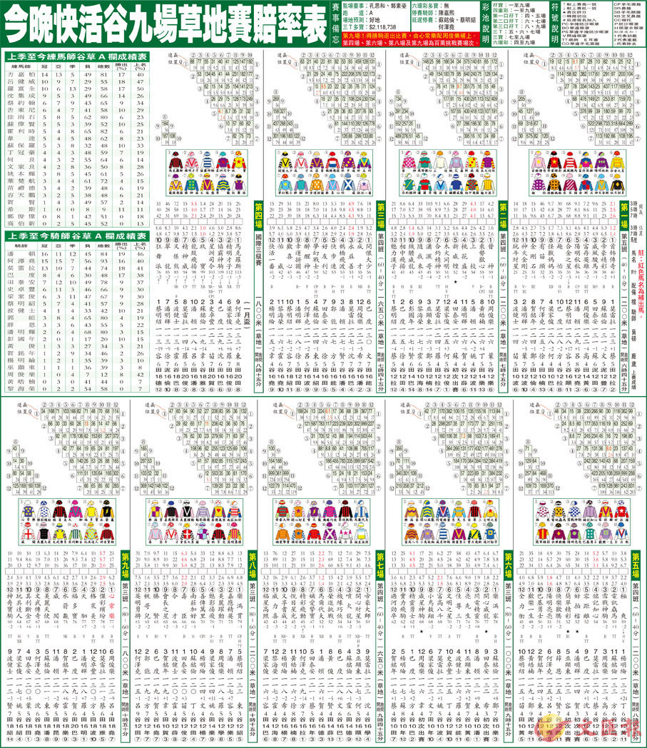 今晚快活谷九場草地賽賠率表