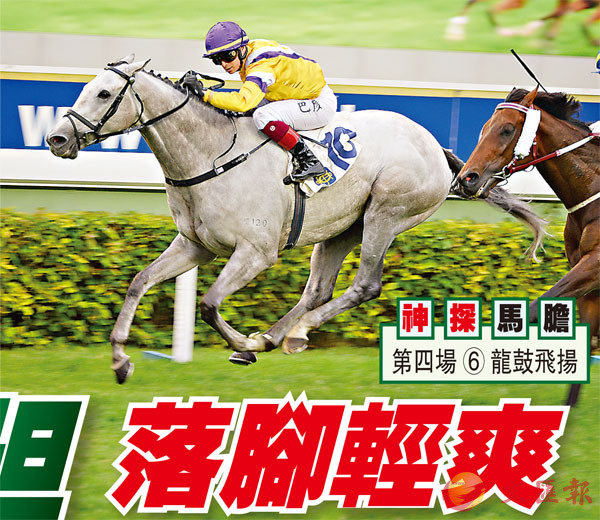 第三場、第四班、一六五○米。「開懷大少」復課身輕步捷,肌身紮實如鐵,勁度充沛毛色轉深,勇健依然。「永益善」快試姿態輕鬆,馬身唔瘦,落腳輕快靈活,態況仍處頂峰水平。「鵲橋飛渡」近試積極認真,馬身茁壯飽滿,神采飛揚,論態回復全盛水準。「幸運拼圖」馬身養壯,毛色油潤奪目有心火,勇態邁進。
