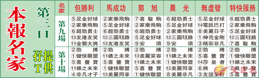 本報名家第三口孖T提供