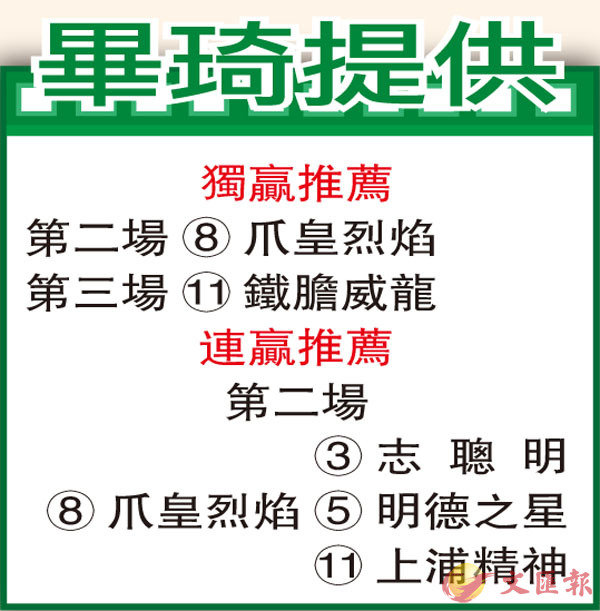 「鐵膽威龍」助手彭福公園快踱一圈,貼欄完成,步步有力,體態結實,朝氣勃勃,狀態冇得彈。