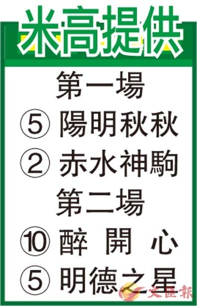 第二場、第五班、一六五○米。「醉開心」在五班有級數,畢竟去季曾於五班谷草一哩贏馬,只是本身並不襟拚;上場在此程跑得第二名,影相輸鼻位相當欠運,復課由潘頓一手一腳操好,近期狀態托弗無懼任何對手,可以看高一線。「明德之星」今季三捷五班谷草猶有餘勁,頗有大器晚成味道,今場有不少快馬,步速不會太慢,可望後發先至。