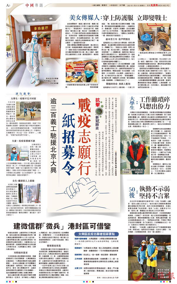 一位多年從事公益工作的在京港人表示,封閉管理社區可以有效防止病毒擴散,香港也正在嘗試和推進封區管理,志願者在封區管理的各項工作中發揮了重要作用,香港封區管理也可以嘗試借鑒這一經驗,向社會公開招募志願者配合抗疫工作。