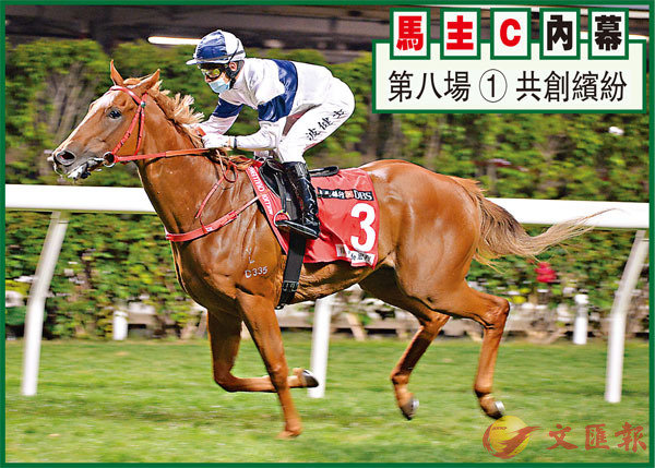 第八場、第三班、一二○○米。「共創繽紛」前仗因巴度停賽而轉配波健士,結果以輕鬆姿態擊倒「飛霸龍」贏馬;上仗續攻強項窄場千二,回配巴度執韁,騎者沿途守好位,可是入直路打衝鋒只跑第三,今次瞄準同程,交出水準當有條件爭入前三。