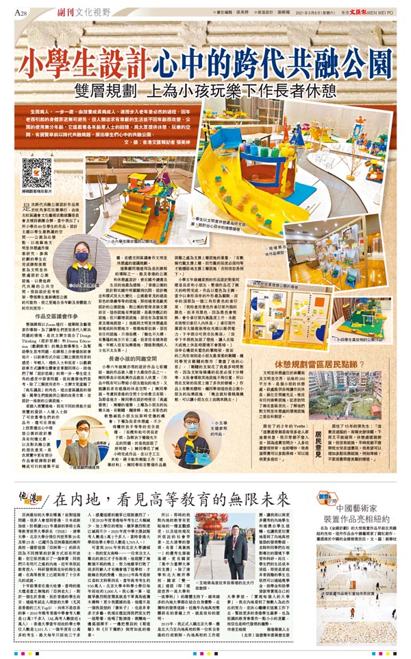 ¬O¦¸¸ó¥N¦@¿Ä¤½¶é³]p§@«~®i©ó©ô¨¤³Áªá¦Ú¶×Á|¦æ¡A¥Ñªo¦y©ô°Ïij·|¤å¤ÆÃÀ³N¬¡°Ê²ÎÄw©eû·|¤Î±¡¸Ö¼@¹Î¦X¿ì¡A·í¤¤®i¥X¤F4©Ò¤p¾Ç¦@80¦ì¾Ç¥Íªº§@«~¡C³]p¥DÃD¥H¾Ç¥Í³Ì¼ôÃѪºªÅ¶¡--¤½¶é¬°¥XµoÂI¡A¥Hªo³Â¦a¤å©ú¨½¥ð¾Í³B§@Ӯ׬ã¨s¡A°Ñ»Pp¹ºªº¾Ç¥Í¦b§¹¦¨½Òµ{«á»Ýn¬°¤å©ú¨½¥ð¾Í³B³]p¤½¶é³]¬I¡A¥HÀç³y¸ó¥N¦@¿Äªº¤½¦@ªÅ¶¡¡CɧU³]p«ä¦Ò®Ø¬[¡A±a»â¾Ç¥Í«·sºc«ä¤½¶éªº¥i¯à©Ê¡A¨Ï¤§§ó¾A¦X¦U¦~Ä֤ΨÅé¯à¤Oªº¥«¥Á¨Ï¥Î¡C