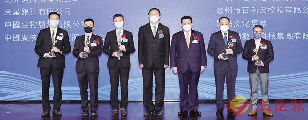 ●全國政協委員、香港中文大學工程學院副院長(外務)黃錦輝,全國政協委員、香港廣東社團總會常務副主席兼秘書長龍子明頒發粵港澳大灣區最具創新價值大獎給獲獎公司代表