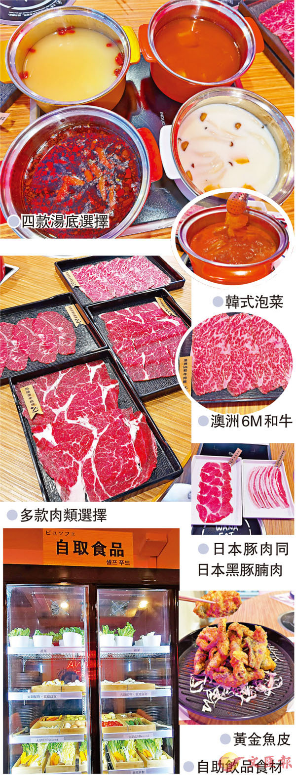 然後,大家可以開始食火鍋,湯底有5款可以選擇︰美顏花膠鍋、韓式泡菜鍋、北海道牛乳鍋、日式海帶豆腐鍋及麻麻辣辣鍋任選一, 女士都愛揀美顏花膠鍋,大大蔽廔戌n正﹗肉類有日本黑毛豬腩肉、日本豚肉、日本和牛肉眼、M6澳洲和牛肉眼、極上安格斯牛小排、特級雪花牛板腱、頂級黑牛肩脊等,睇中邊款想食都可以追加,肉類夠新鮮薄切唔會好滯。